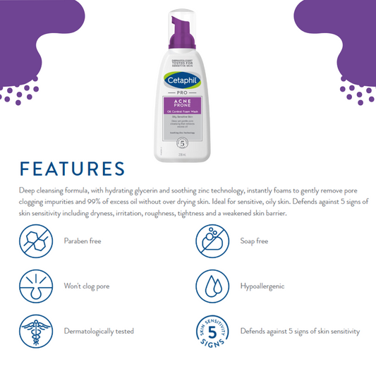 Cetaphil Pro Acne Prone Oil Control Foam Wash For Face | 236ML