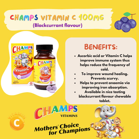 Champs Vitamin C - Blackcurrant flavour 100mg (100 tablets)